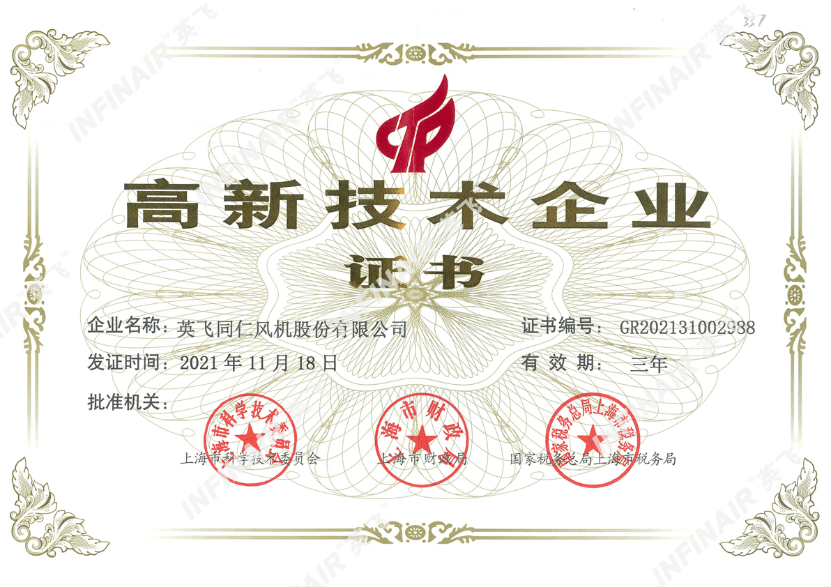 -- 英飛進行了股份制改革,正式更名為英飛同仁風機股份有限公司;